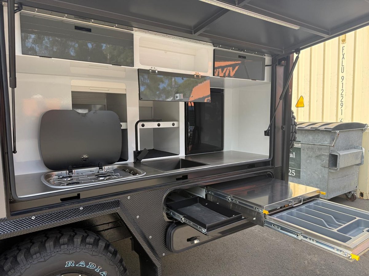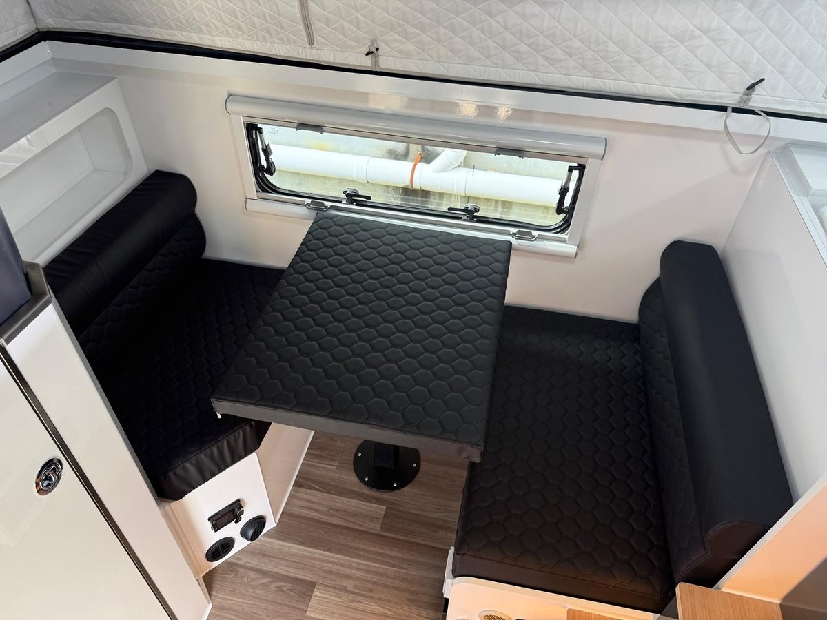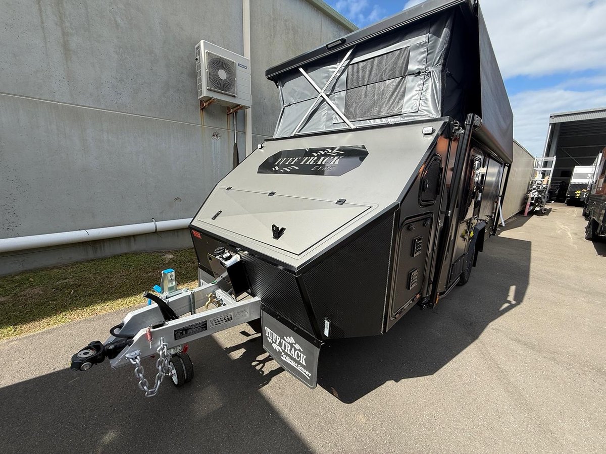Meet the all-new 14ft Tuff Track Eyre — the perfect balance between compact agility and full-feature comfort. Designed for couples and young families who want serious off-road capability without stepping up to a larger van, the Eyre delivers a wider external galley kitchen, massive storage and premium off-grid systems in a low-profile, easy-to-tow package. It’s the best of the Escape and the Outback — refined, reimagined and ready for adventure.