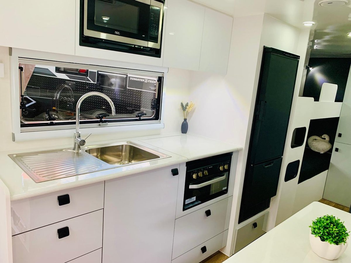 * Construction: They utilize a 100% timber-free structural frame, employing a "Poly-Tech" fiberglass and polyurethane CNC cut wall frame, a TIG-welded aluminium roof frame with a one-piece "floating" fiberglass roof, and a one-piece "honeycomb" fiberglass floor. This composite frame makes the caravans lighter and potentially towable by a wider range of vehicles. The Polytech frame is also "rot-free".